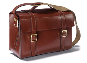 The Malton magazine has a wide opening for easy access and has an adjustable 2" wide cotton shoulder sling for comfort. It also has a leather handle so it can easily be carried by hand.